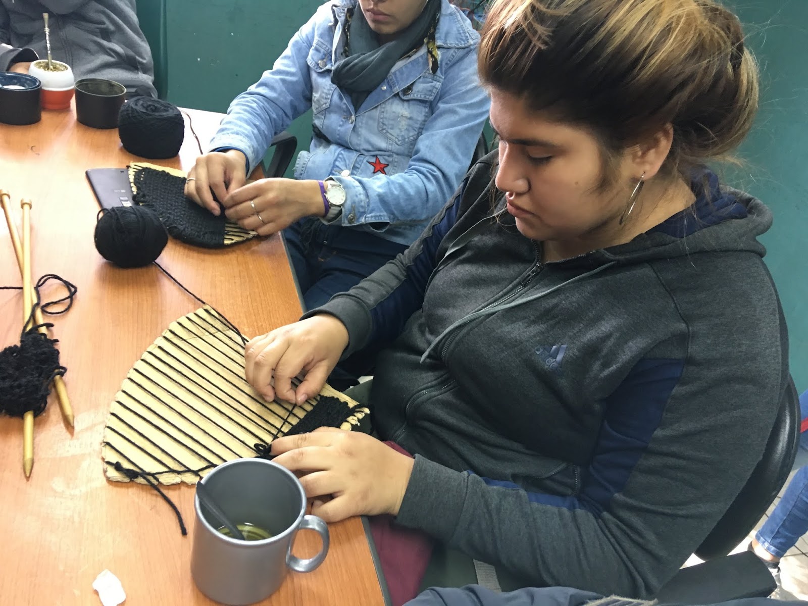 Chicos y chicas por igual, entregados en la aventura de tejer, haciendo un esfuerzo por vencer la ansiedad de terminar pronto y poder permitirse disfrutar del proceso.